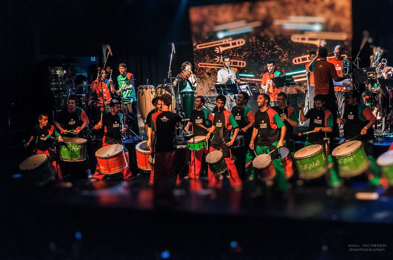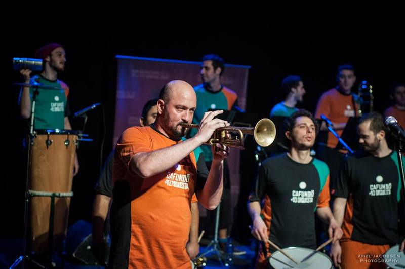 Somos CAFUNDO +10 ORQUESTA, un proyecto musical que combina tambores y vientos. Somos 19 percusionistas, 8 instrumentos de viento y 2 directores arriba del escenario en conjunto tocando temas compuestos por nosotros y versionando algunos clásicos.